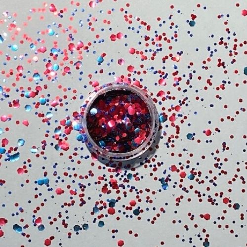 Our Jelly Opal glitter is a blend of dark blue and cerise